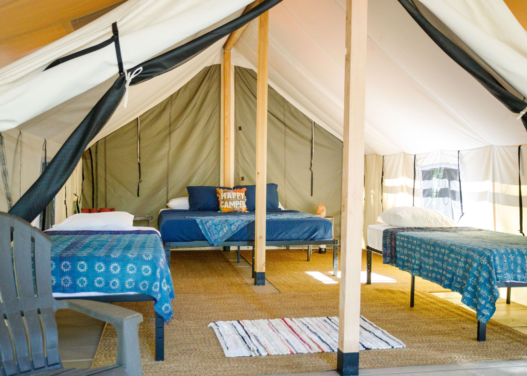 This glamping tent includes 4 sleeping spaces and may be shared unless all beds are booked by one group.